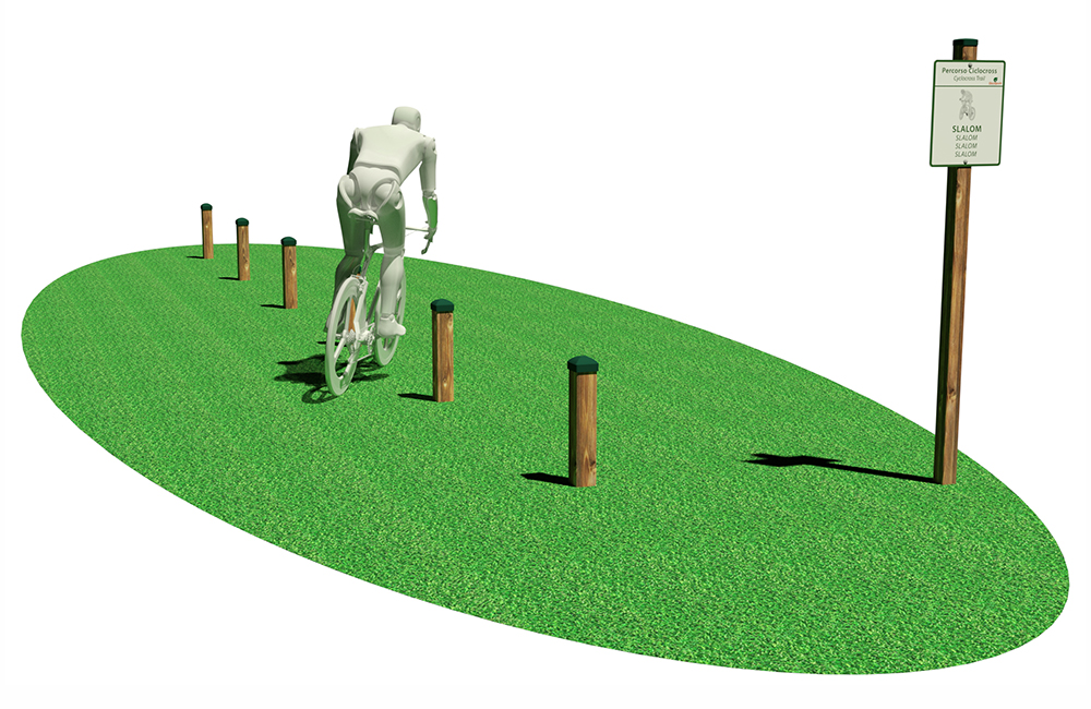 Realizzato in legno lamellare di pino nordico impregnato in autoclave con sali atossici. Costituita da n° 6 montanti verticali della sez. cm 9 x 9, posizionati consecutivamente. La stazione munita di cartello in alluminio Dibond® spess. mm 3 dim. cm 33×41 sul quale vi è serigrafato u n°immagine rappresentativa, ed il nome della stazione in diverse lingue; il cartello sorretto da un palo in legno lamellare della sez. cm 7 x 7 ed altezza cm 250 da interrare. Assemblaggio mediante bulloneria in acciaio zincato 8.8 e dadi autobloccanti.