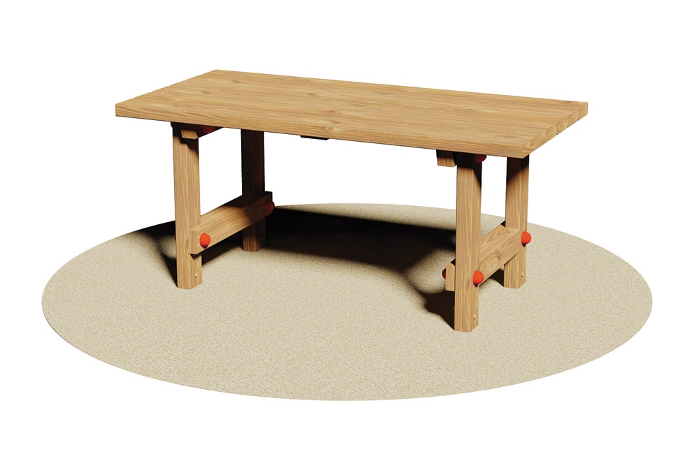 Realizzato in legno di pino nordico impregnato in autoclave con sali atossici. l’intelaiatura costituita da fasce sez. cm 7×4,5 e traverse di rinforzo sez. cm 7×7. Il piano del tavolo realizzato con fasce di sez. cm 9×3,5. Assemblaggio mediante bulloneria in acciaio zincato 8.8 e dadi autobloccanti. Elementi copridado a norma in nylon colorato.